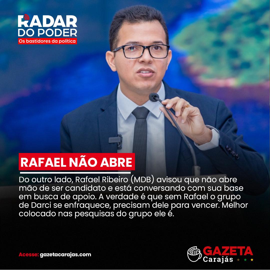 Do outro lado, Rafael Ribeiro (MDB) avisou que não abre mão de ser candidato e está conversando com sua base em busca de apoio. A verdade é que sem Rafael o grupo de Darci se enfraquece, precisam dele para vencer. Melhor colocado nas pesquisas do grupo ele é.