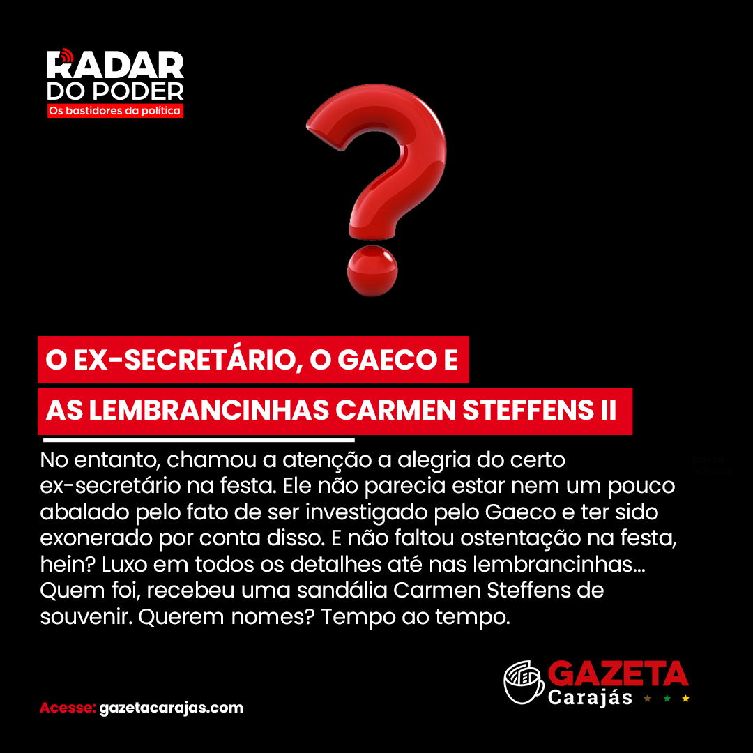 No entanto, chamou a atenção a alegria do certo ex-secretário na festa. Ele não parecia estar nem um pouco abalado pelo fato de ser investigado pelo Gaeco e ter sido exonerado por conta disso. E não faltou ostentação na festa, hein? Luxo em todos os detalhes até nas lembrancinhas... Quem foi, recebeu uma sandália Carmen Steffens de souvenir. Querem nomes? Tempo ao tempo.