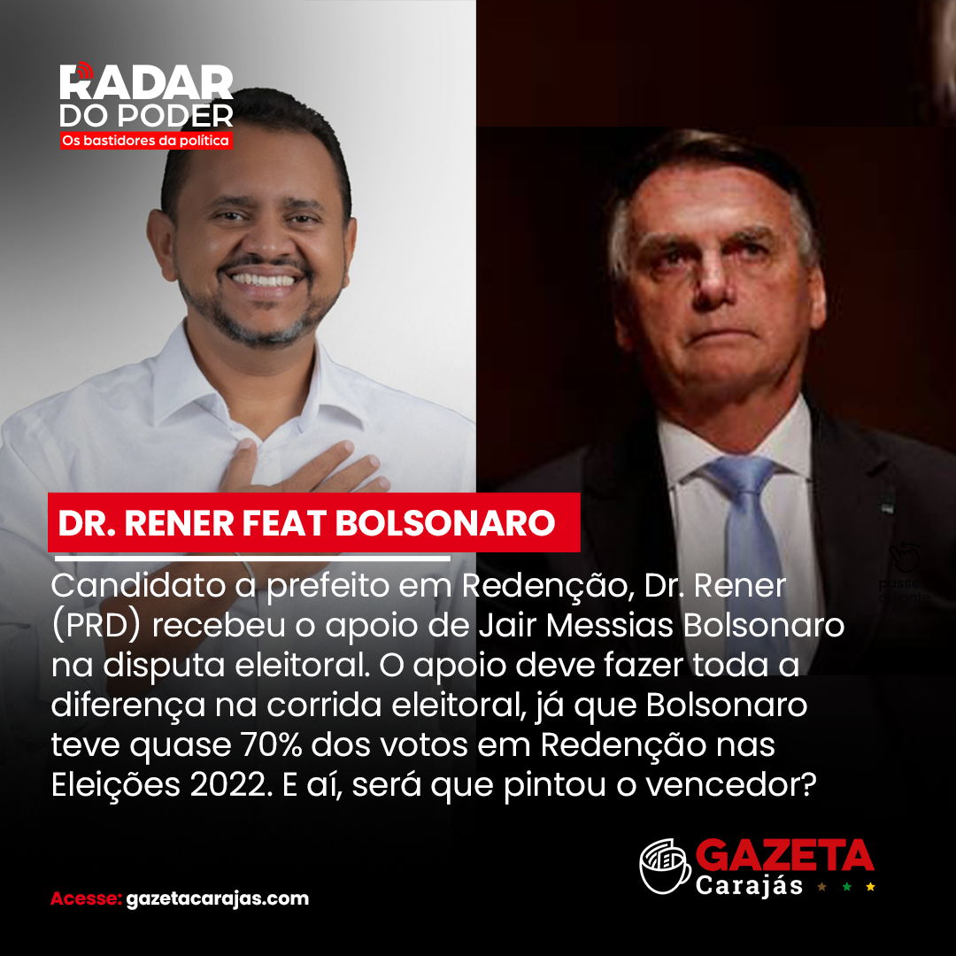 Candidato a prefeito em Redenção, Dr. Rener (PRD) recebeu o apoio de Jair Messias Bolsonaro na disputa eleitoral. O apoio deve fazer toda a diferença na corrida eleitoral, já que Bolsonaro teve quase 70% dos votos em Redenção nas Eleições 2022. E aí, será que pintou o vencedor?
