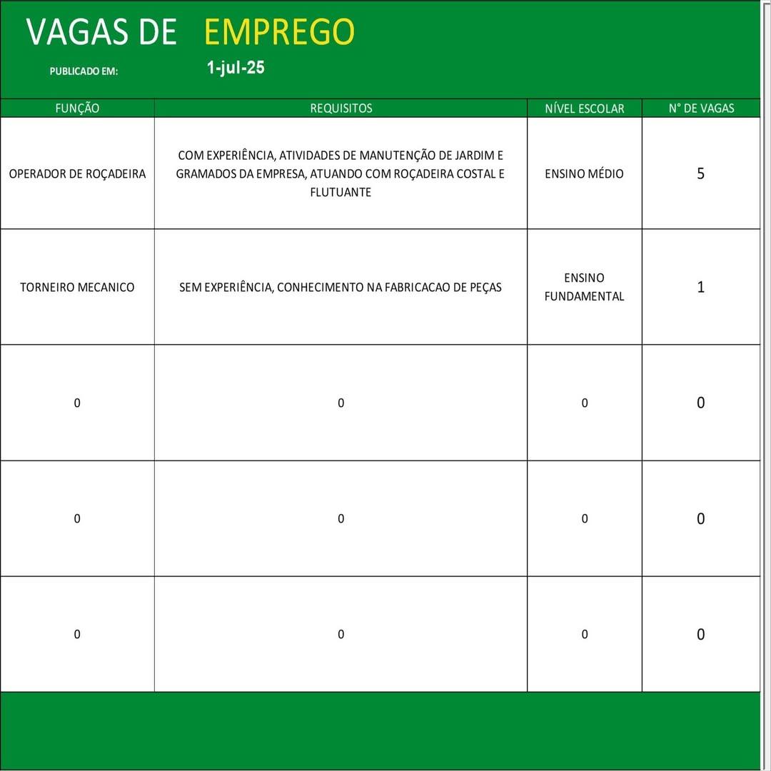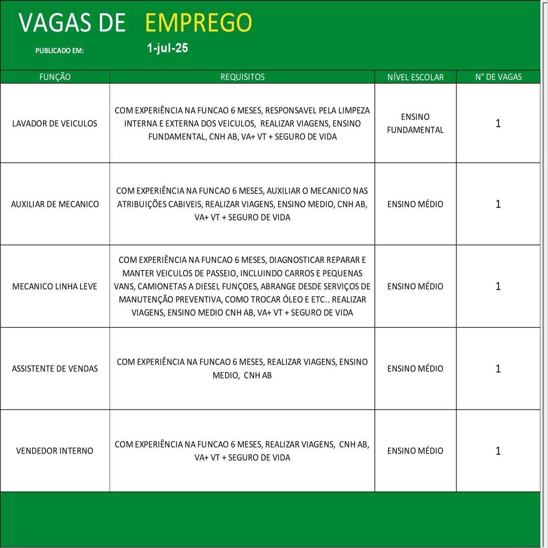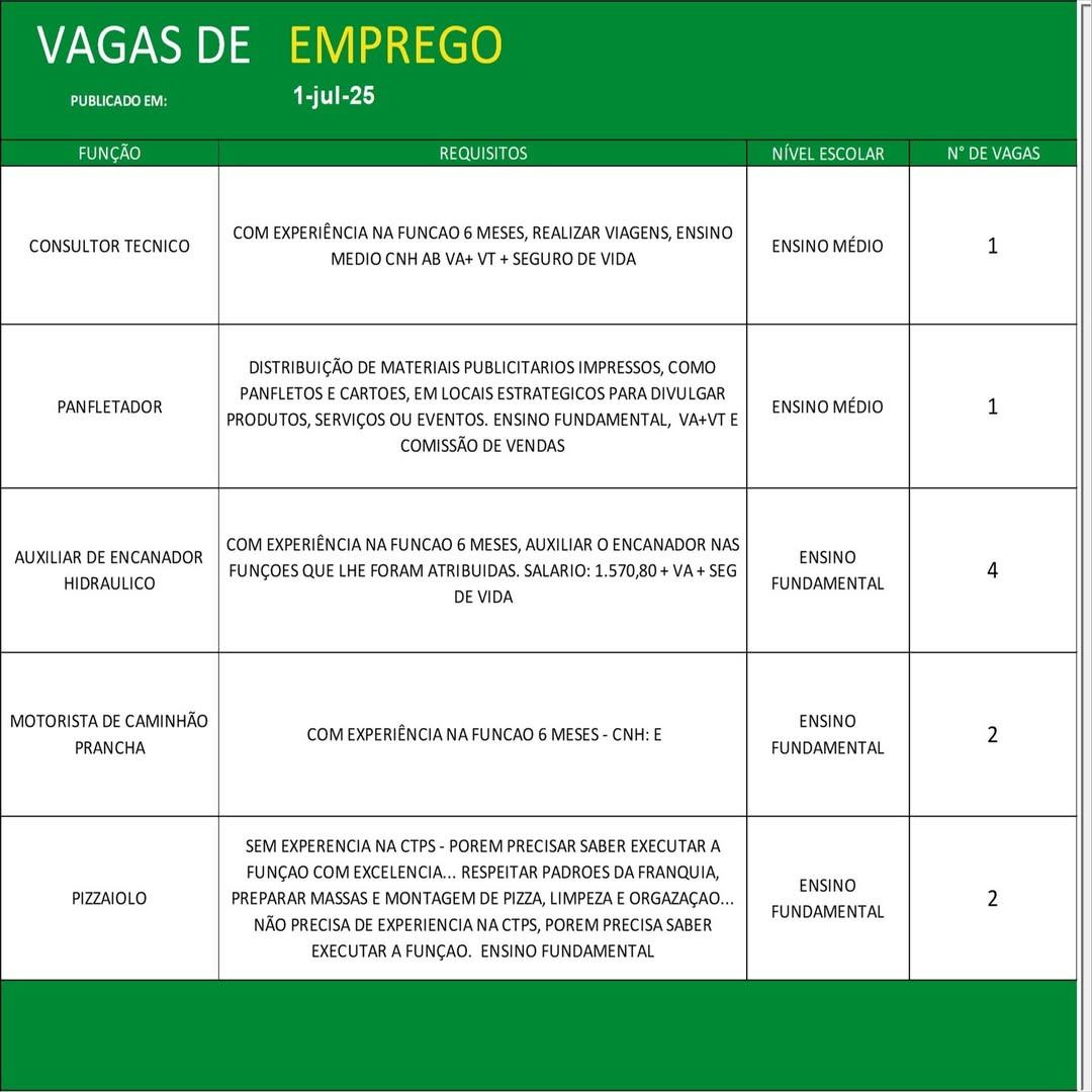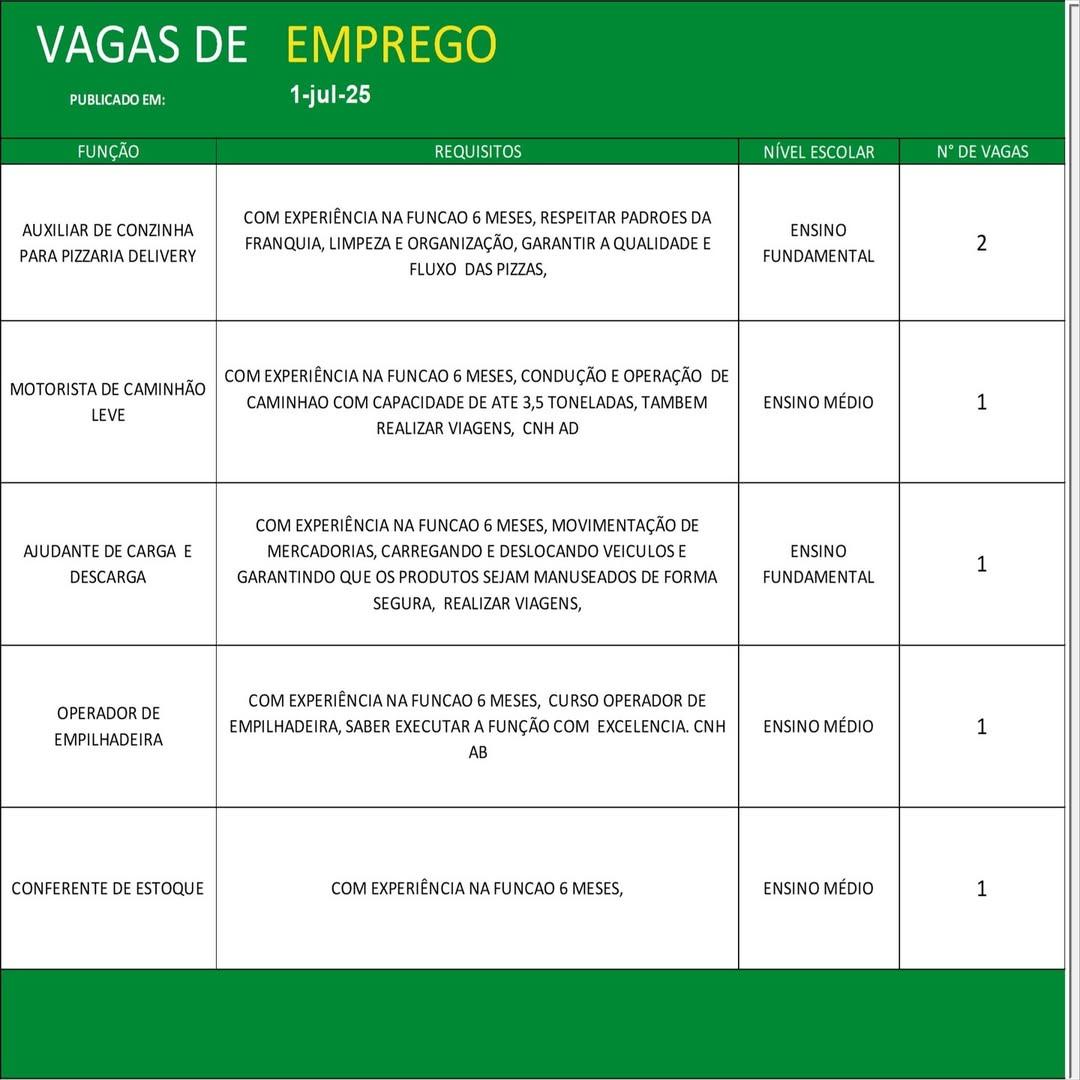 O Sine de Parauapebas divulgou as vagas em aberto nesta terça-feira (1). Os interessados devem apresentar currículo, RG, CPF, Carteira de Trabalho e comprovante de residência.