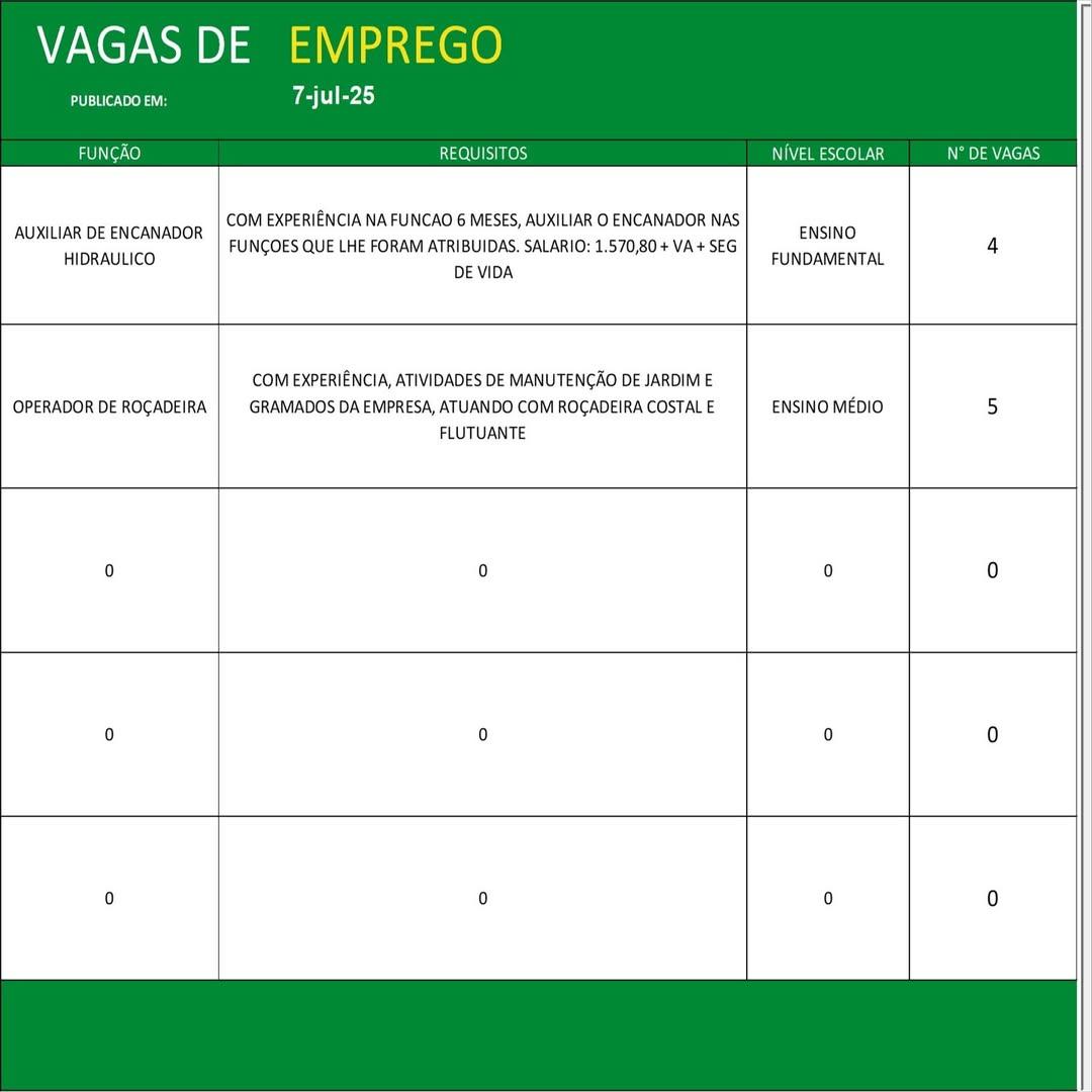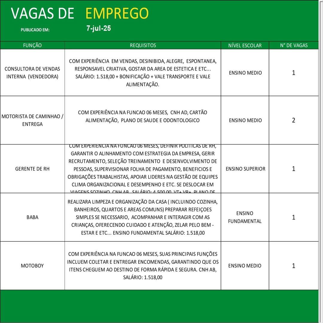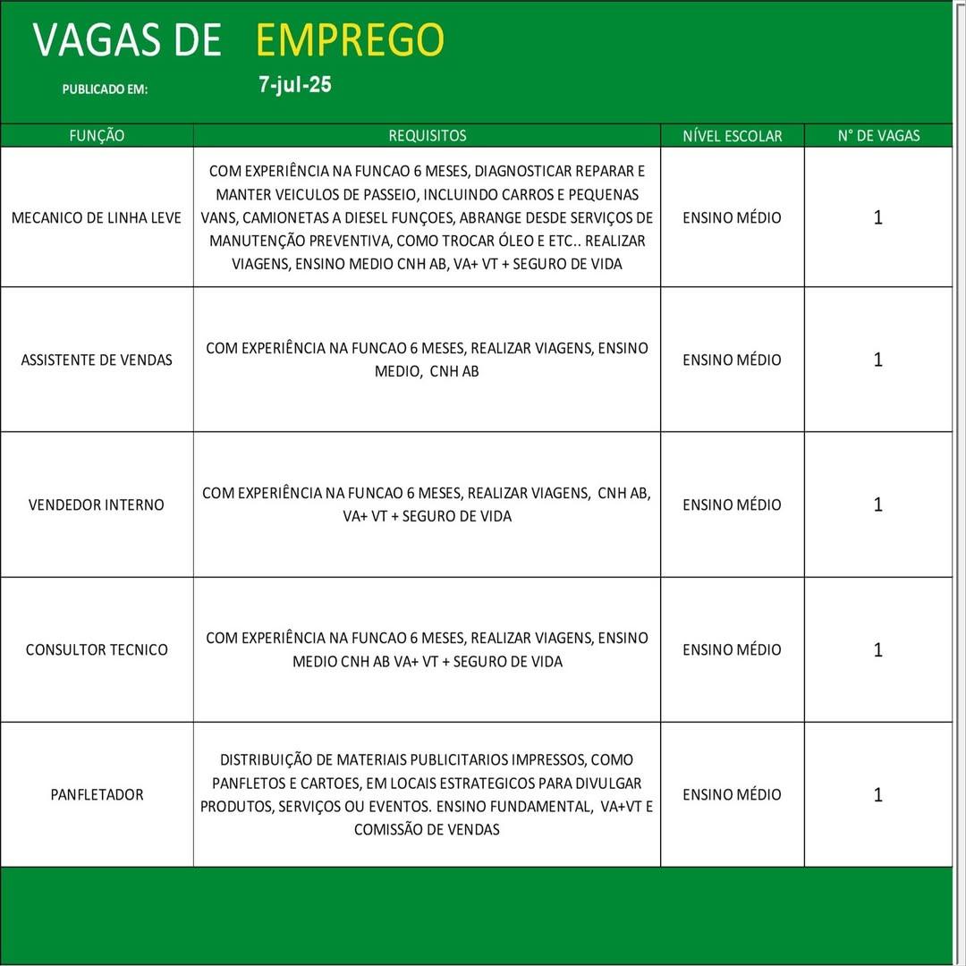 O Sine de Parauapebas divulgou as vagas em aberto nesta segunda-feira (7). Os interessados devem apresentar currículo, RG, CPF, Carteira de Trabalho e comprovante de residência.