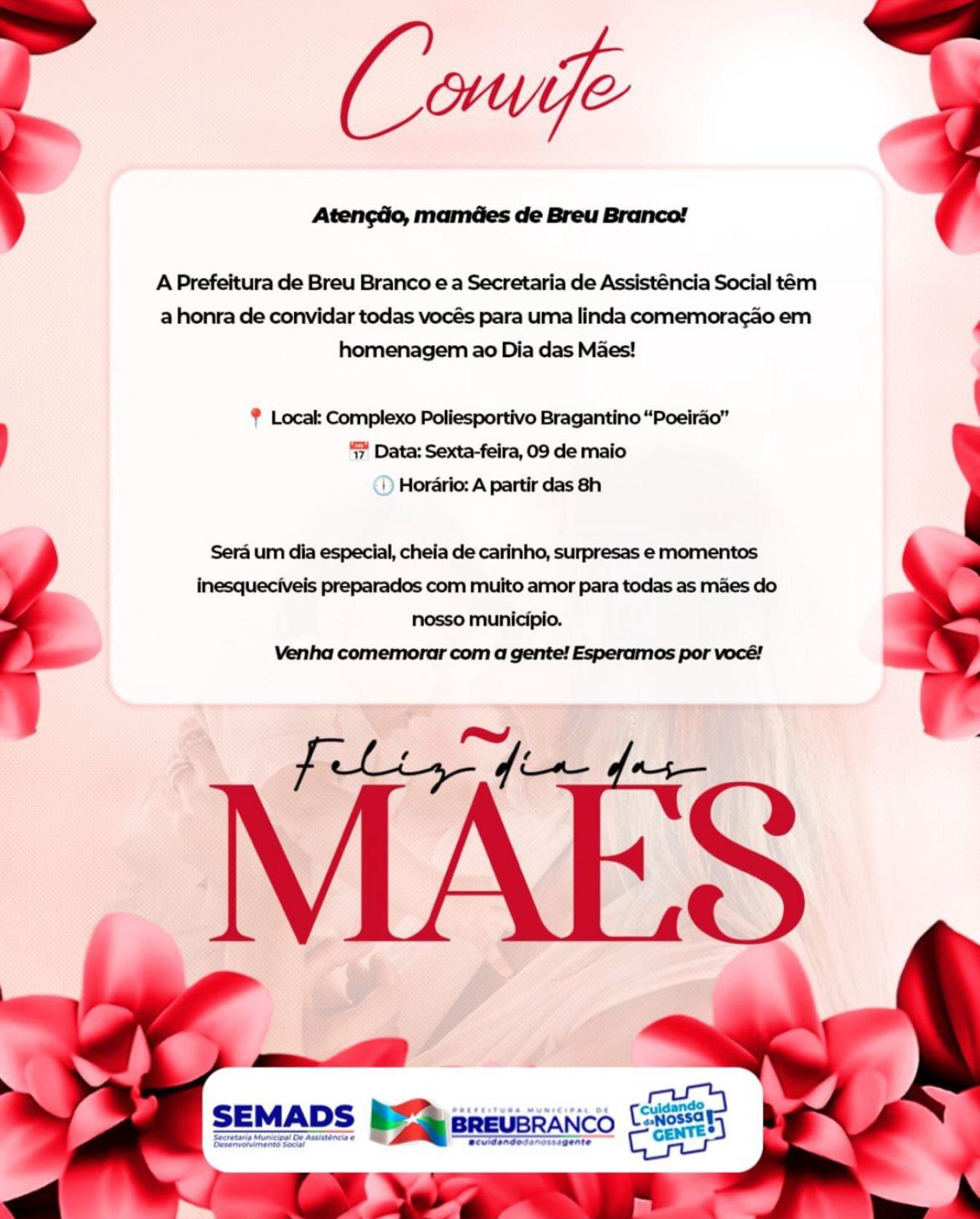 A Prefeitura de Breu Branco convida todas as mães da cidade a participarem desta celebração, que promete ser um evento inesquecível.