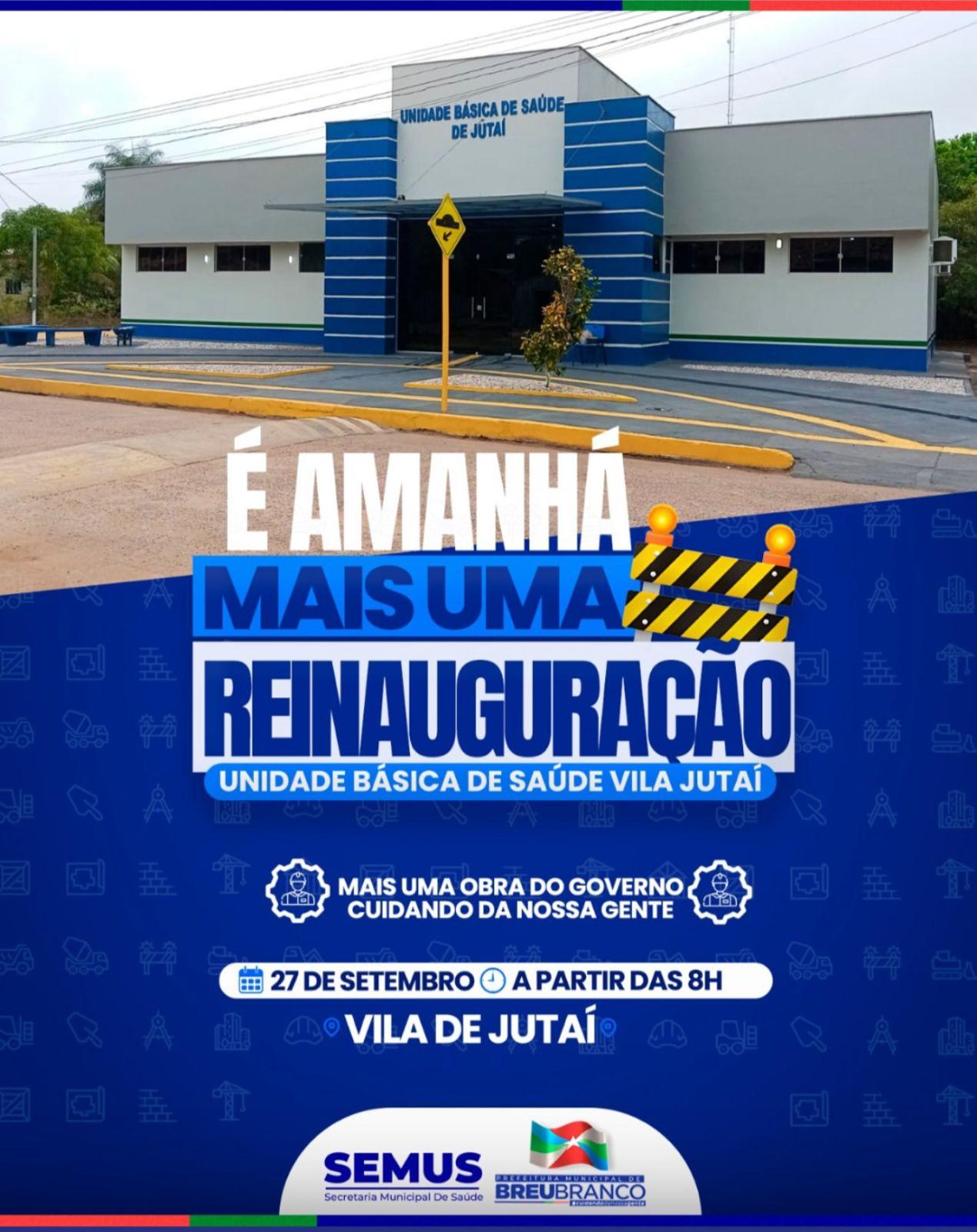 A Vila de Jutaí, em Breu Branco, terá um importante reforço na área da saúde. Neste sábado (27), a Prefeitura, por meio da Secretaria Municipal de Saúde (SEMUS), realizará a reinauguração da Unidade Básica de Saúde (UBS) da comunidade.