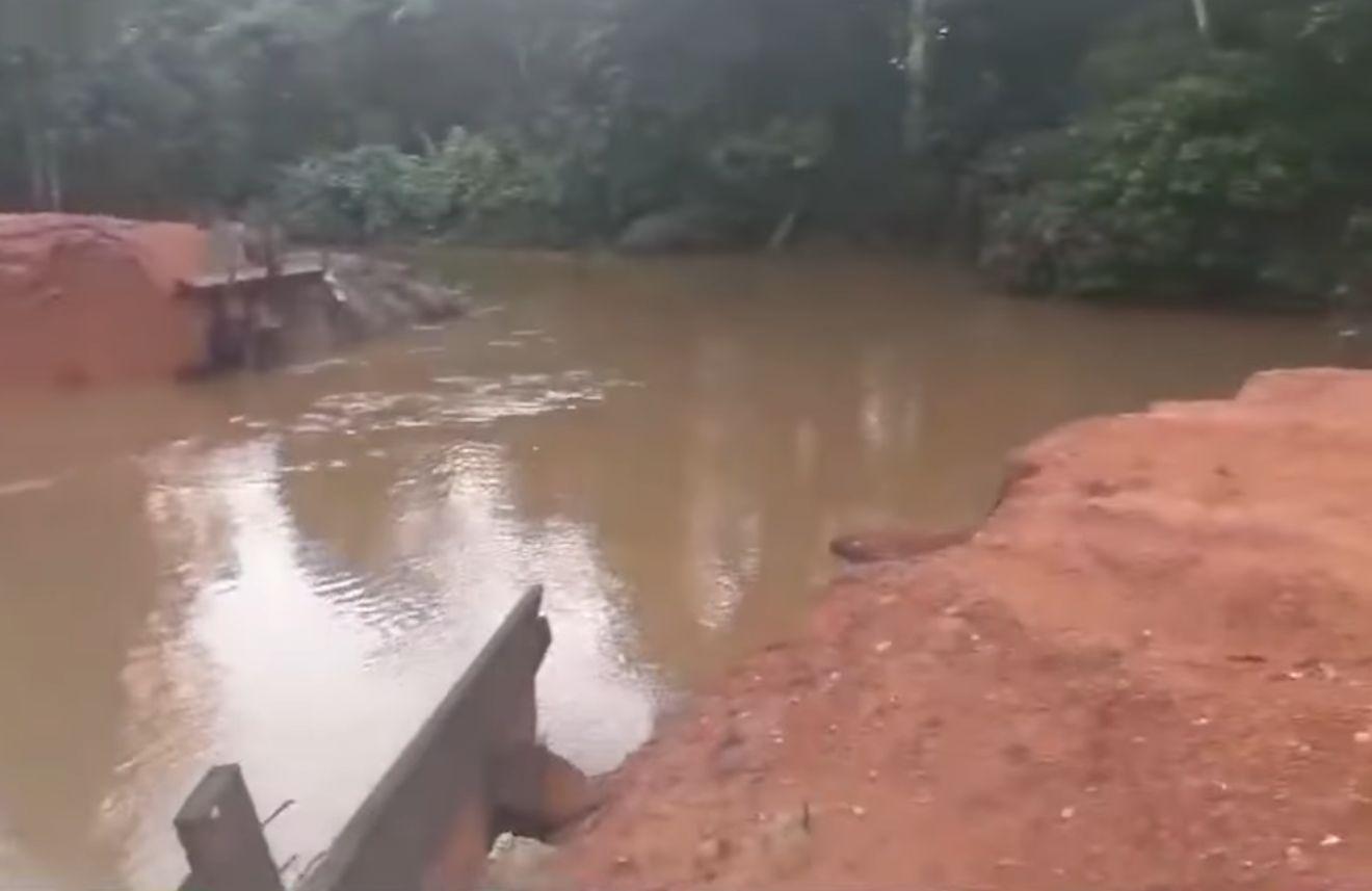 A intensidade da inundação acabou levando até o mesmo uma ponte que era utilizada pela comunidade.