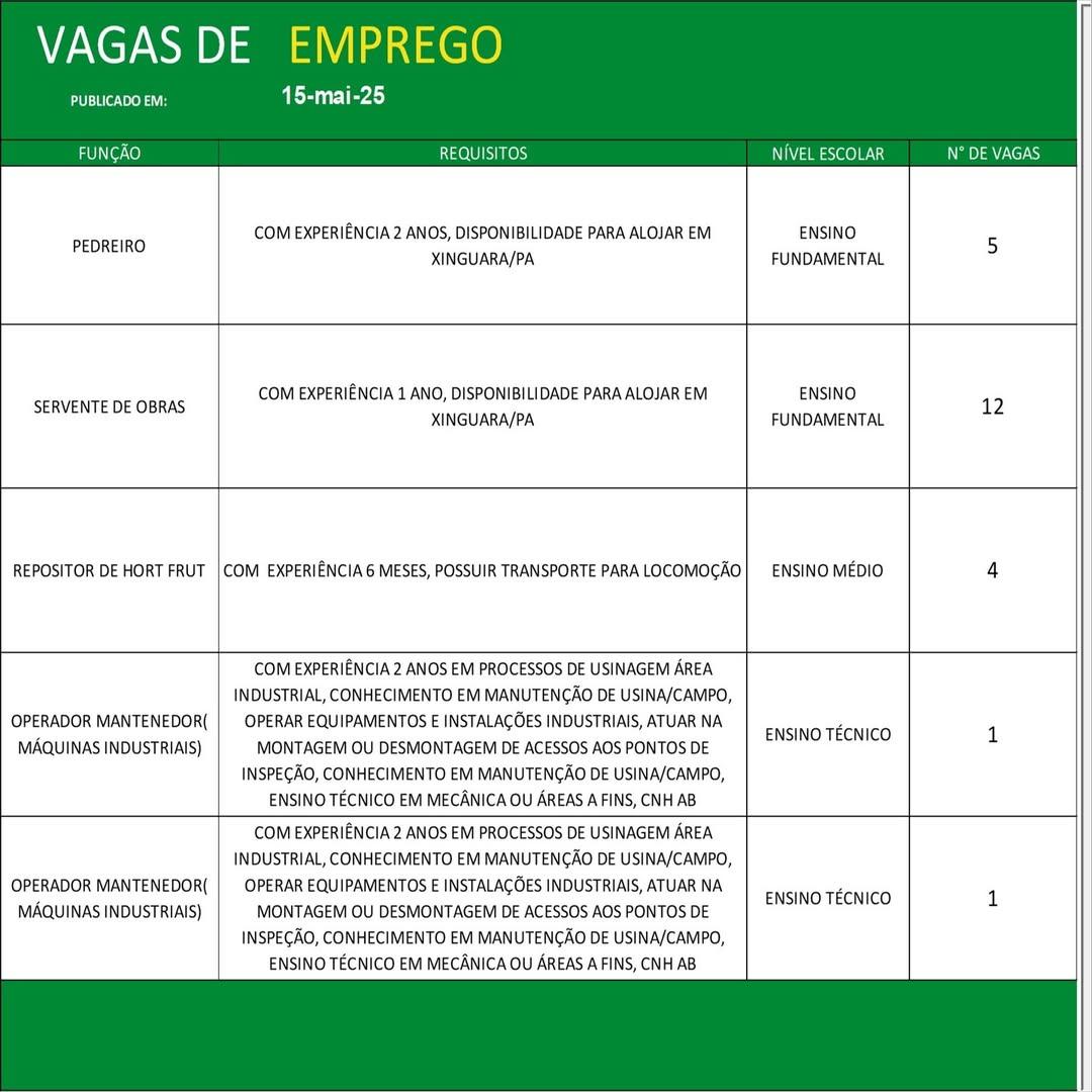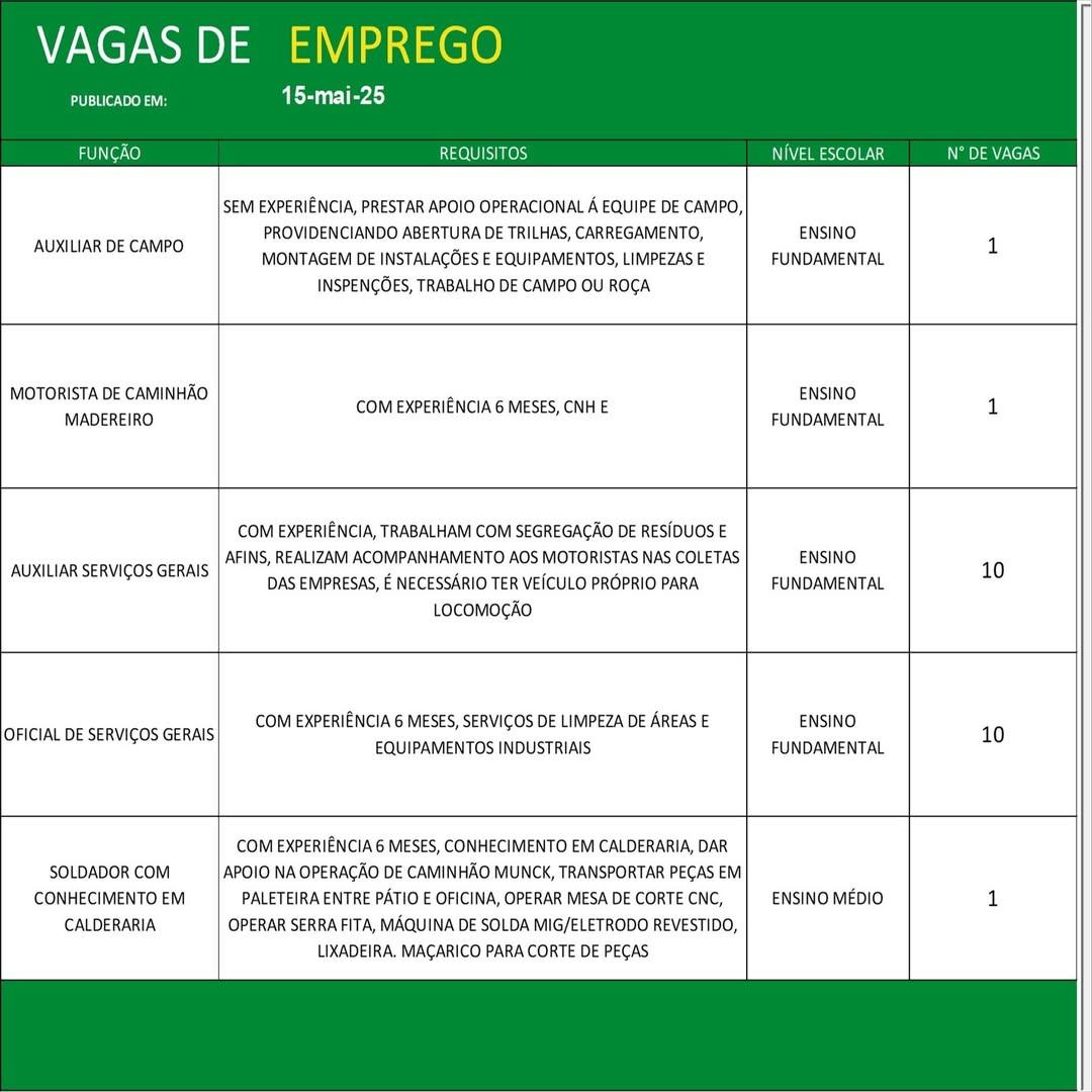 O Sine de Parauapebas divulgou as vagas em aberto nesta quinta-feira (15). Os interessados devem apresentar currículo, RG, CPF, Carteira de Trabalho e comprovante de residência.