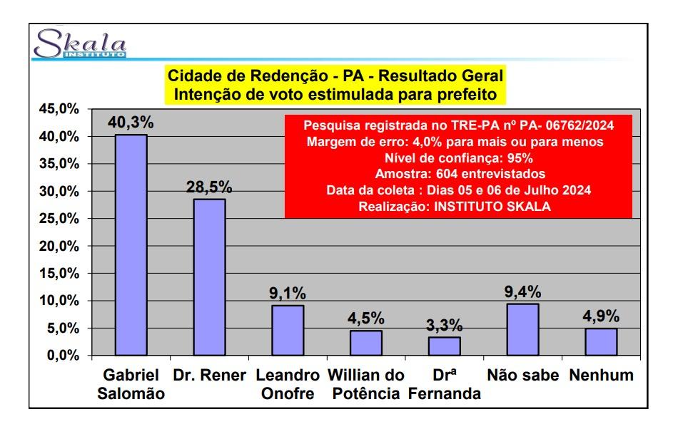O Instituto Skala divulgou uma nova pesquisa eleitoral para o município de Redenção, no estado do Pará, e ao que tudo indica, a disputa promete ser acirrada.