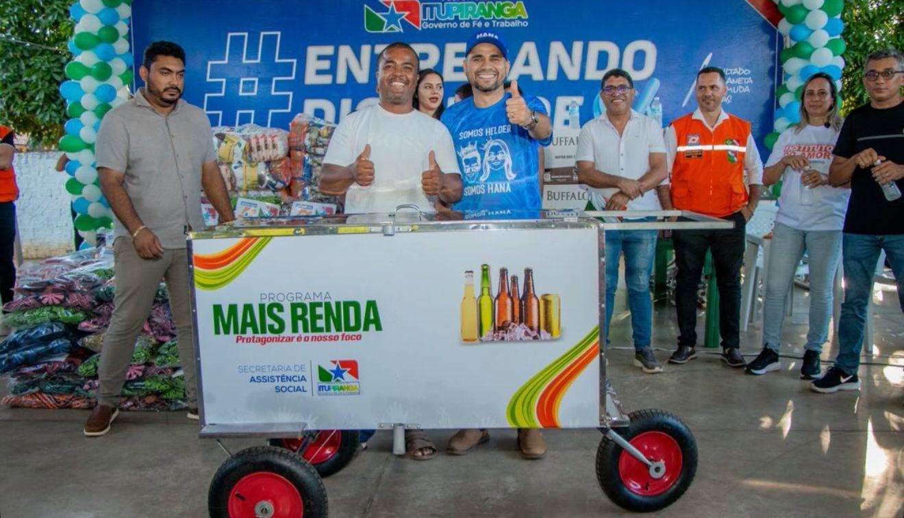 Durante a ação, foram entregues 10 carrinhos padronizados para vendedores ambulantes de bebida, por meio do Programa Mais Renda, uma iniciativa voltada à geração de trabalho e renda para empreendedores populares. Também foram entregues 150 motores rabetas e redes a moradores das comunidades ribeirinhas. Além disso, diversas famílias em situação de vulnerabilidade foram beneficiadas com a entrega de cestas básicas, por meio de parceria com o Governo do Estado. A iniciativa mobilizou equipes da Secretaria de Assistência Social e de outras pastas da gestão municipal, reforçando a presença do poder público em todas as regiões de Itupiranga