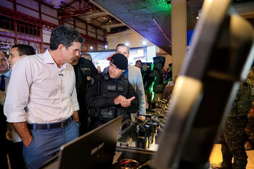 O Governo do Estado realizou na terça-feira (3), no Boulevard das Feiras, na Estação das Docas, em Belém, a entrega dos novos equipamentos para ampliar e fortalecer as ações de Segurança Pública no Pará. Entre os equipamentos entregues pelo governador, Helder Barbalho, estão submetralhadoras, trajes antibomba, maletas para perícias papiloscópica e local de crime, raio-x portátil, magnificadores ópticos, lasers e uma viatura policial.