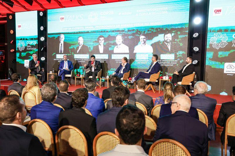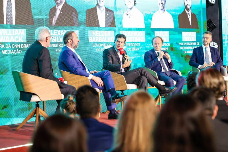 O mediador foi o jornalista Willian Waac e ao lado de Helder Barbalho, também participaram o ministro de Minas e Energia, Alexandre Silveira, o presidente do Instituto Brasileiro do Meio Ambiente e dos Recursos Naturais Renováveis (Ibama), Rodrigo Agostinho, o governador do Amapá, Clécio Luís, e o Vice-presidente de Sustentabilidade da Ambipar, multinacional brasileira líder global em soluções ambientais Rafael Tello.