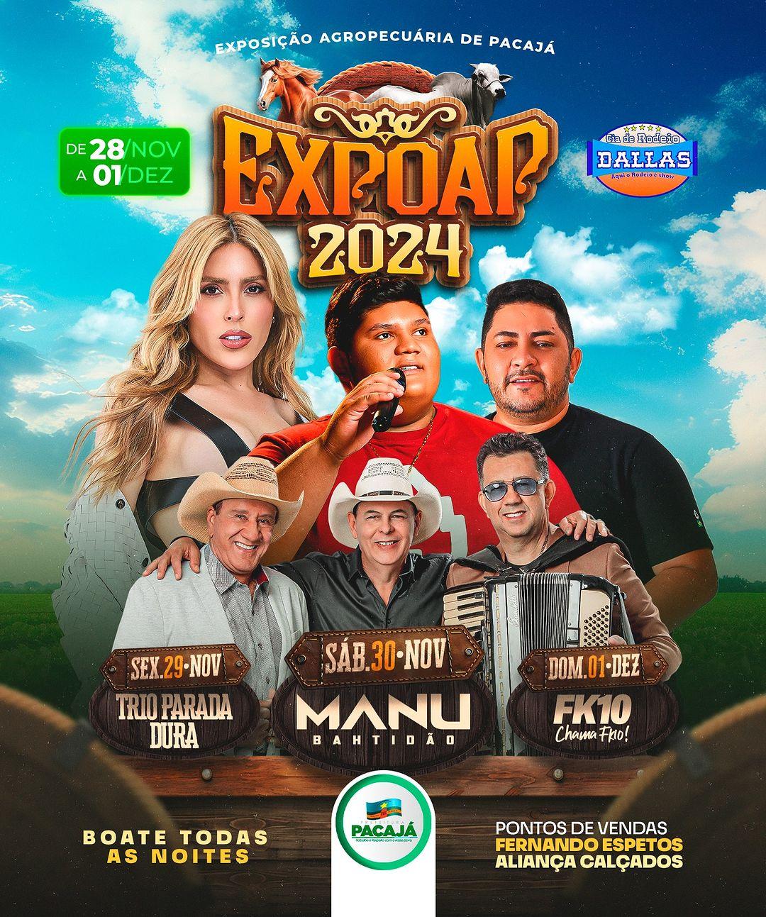 A Exposição Agropecuária de Pacajá começa no dia 28 de novembro e segue até 1 de dezembro.