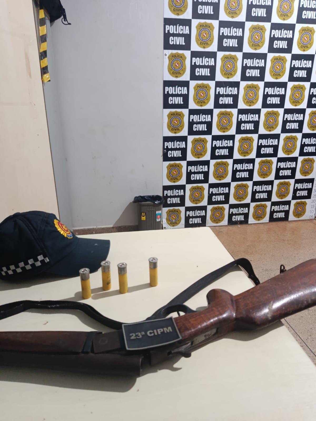 Durante a abordagem, o suspeito confessou a autoria do disparo e indicou o local onde havia escondido a arma utilizada no crime. No local informado, foi apreendida uma arma de fogo do tipo cartucheira, calibre 20, com quatro cartuchos intactos.