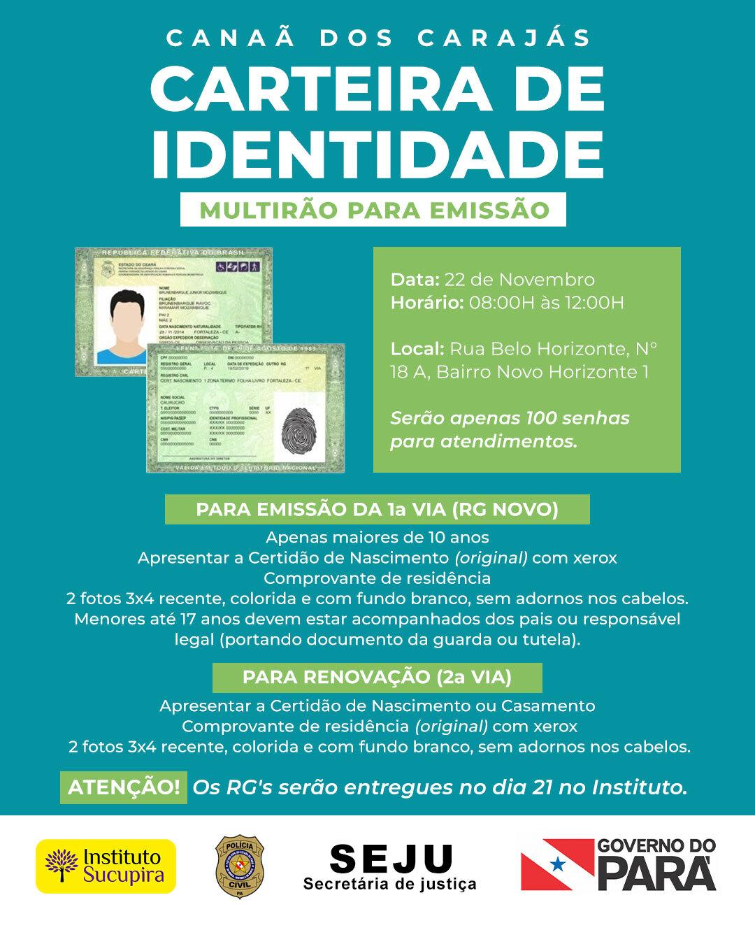 Nesta sexta-feira, dia 22 de novembro, o Instituto Sucupira, em parceria com a Superintendência da Polícia Civil e a Secretaria de Segurança do Estado, estará realizando uma ação para a emissão e renovação de RG.