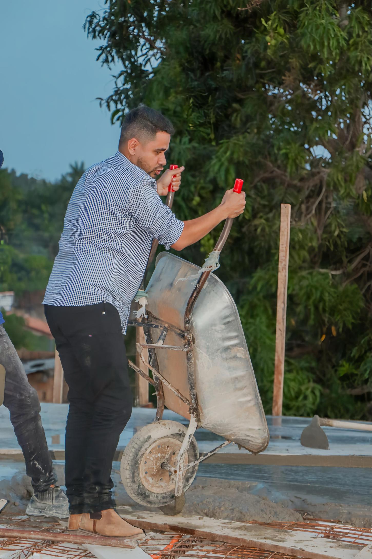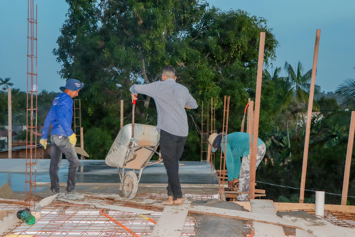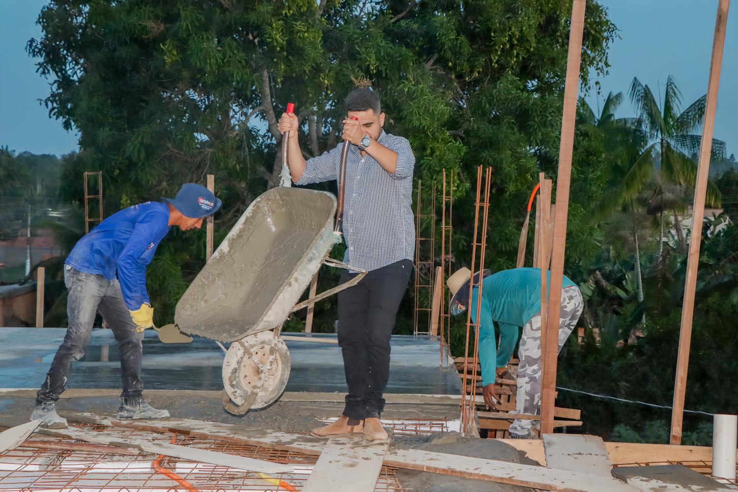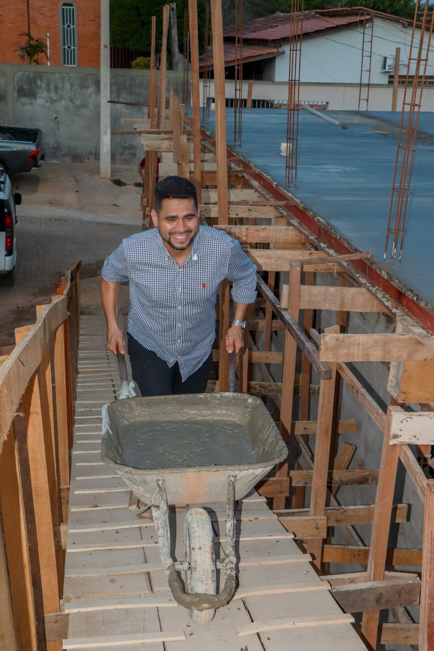 Em tom de descontração e parceria, Godoy participou ativamente das atividades no canteiro de obras, ajudando as equipes a transportar o cimento utilizado na concretagem da laje. O momento também serviu para mostrar o atual estágio da construção, que avança com ritmo acelerado.