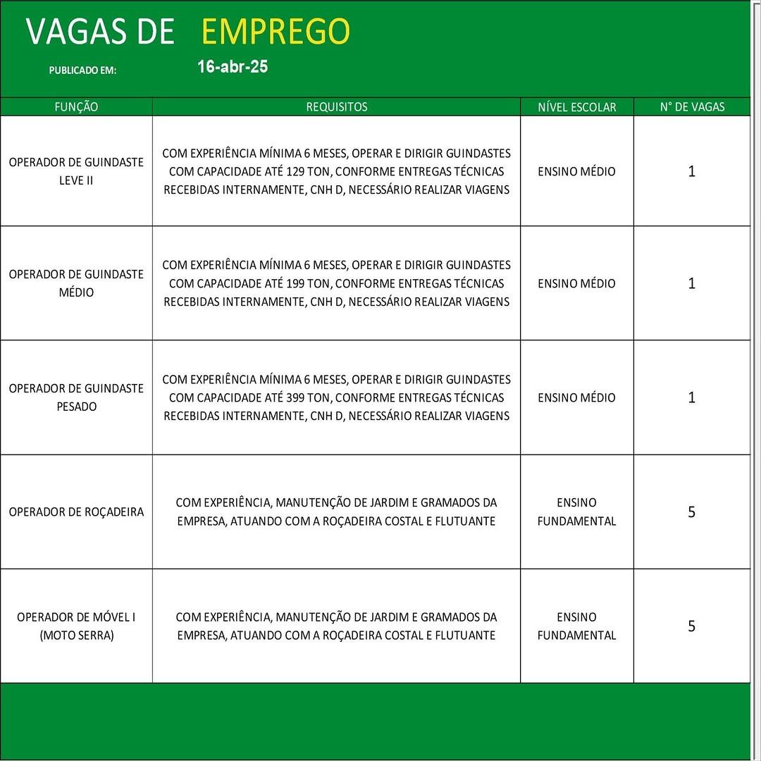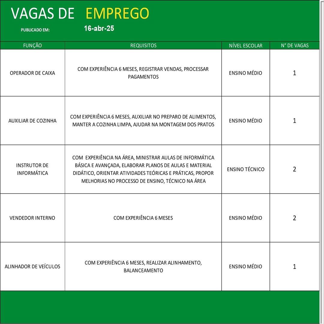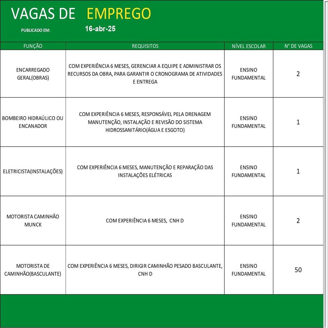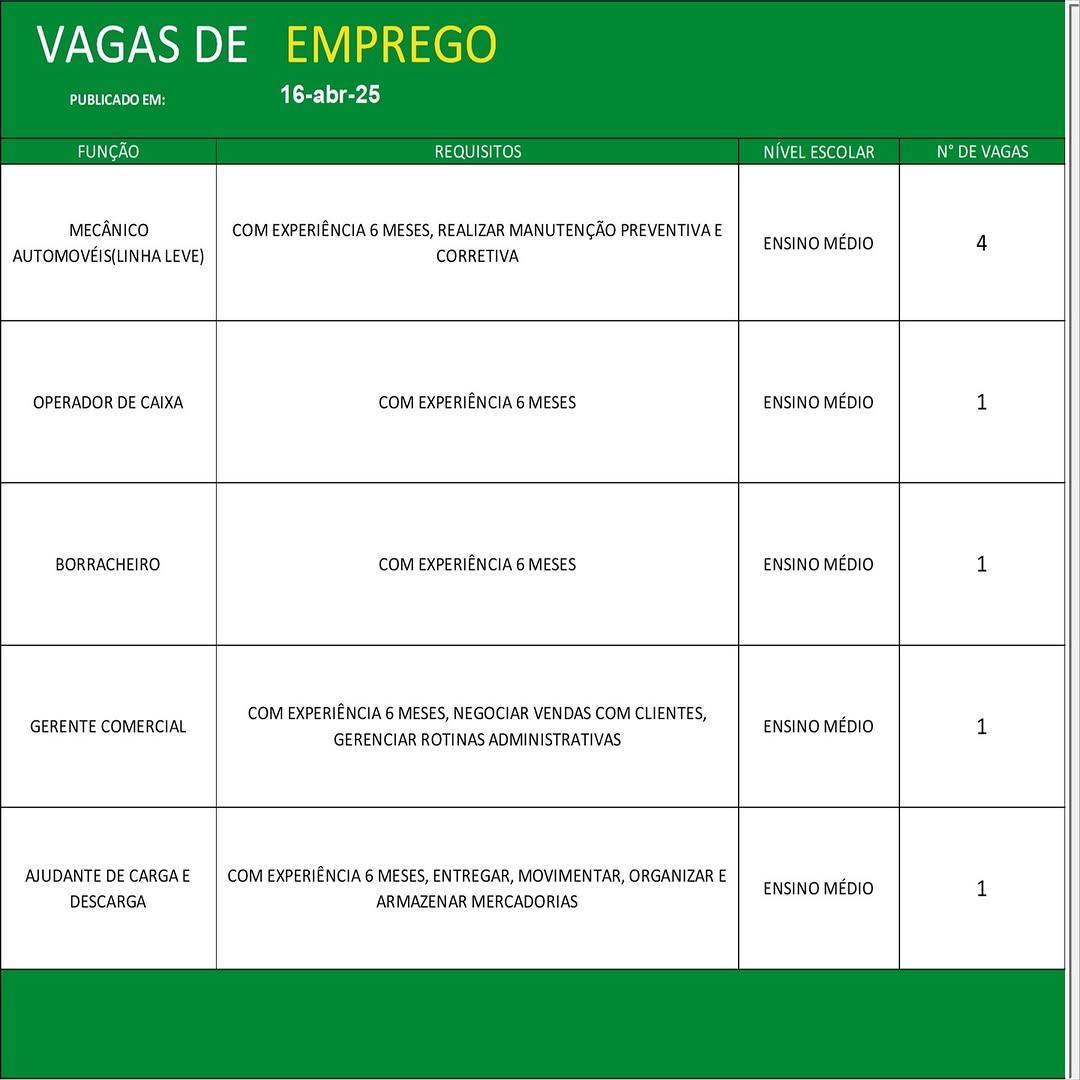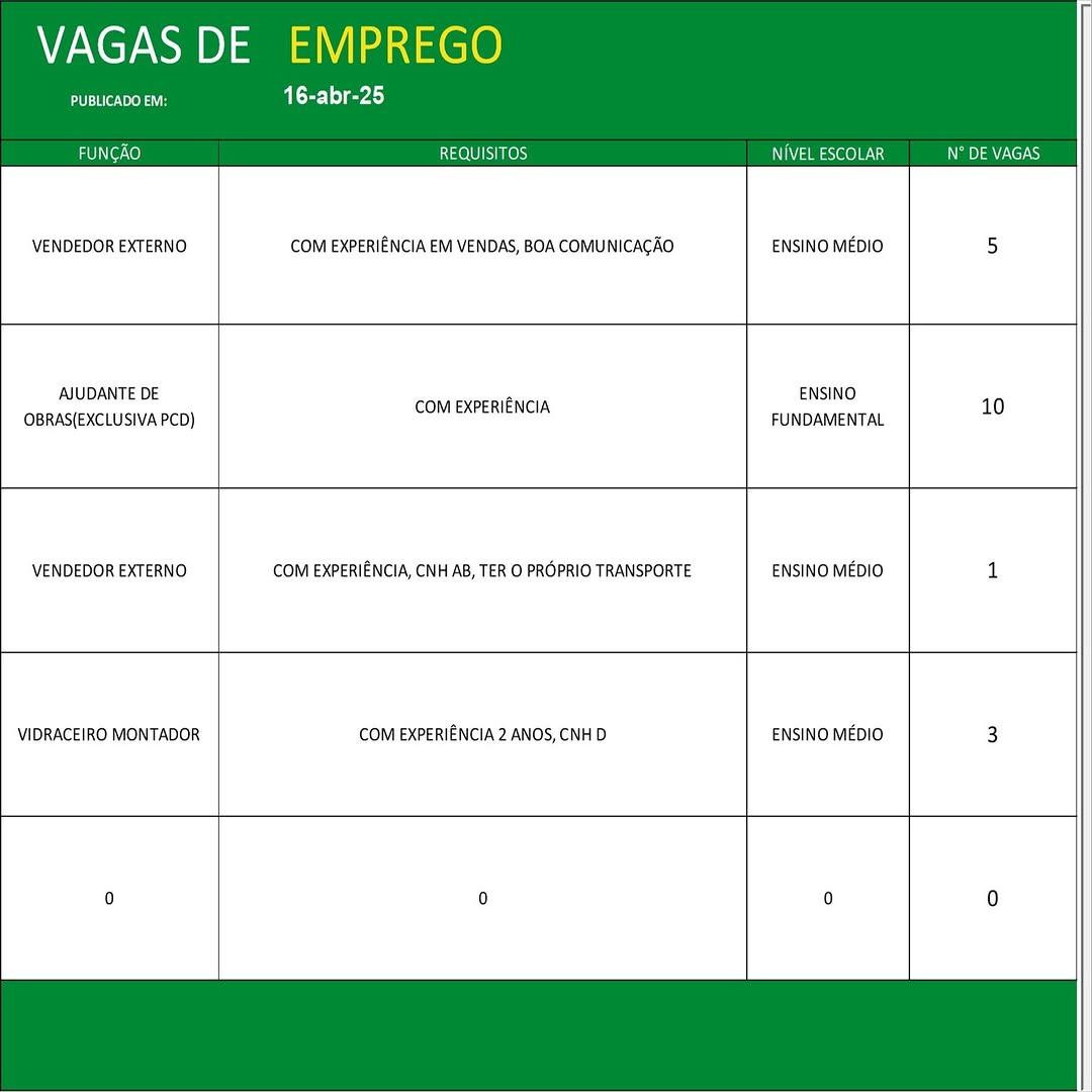 O Sine de Parauapebas divulgou as vagas em aberto nesta quarta-feira (16). Os interessados devem apresentar currículo, RG, CPF, Carteira de Trabalho e comprovante de residência.