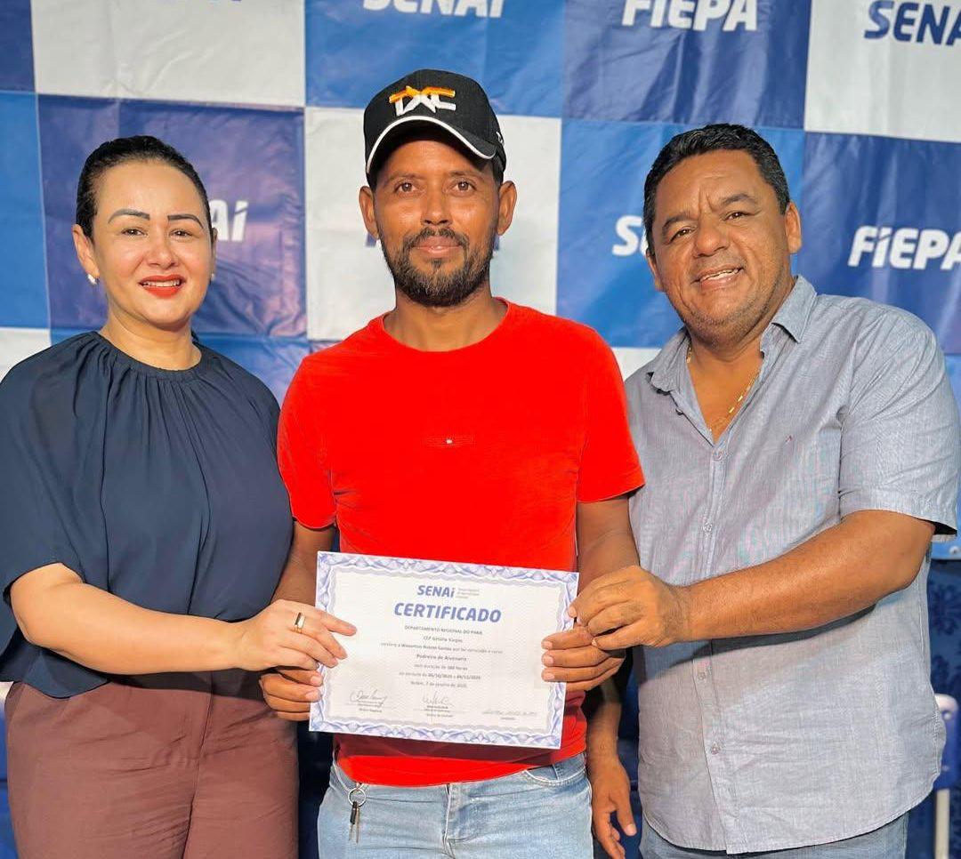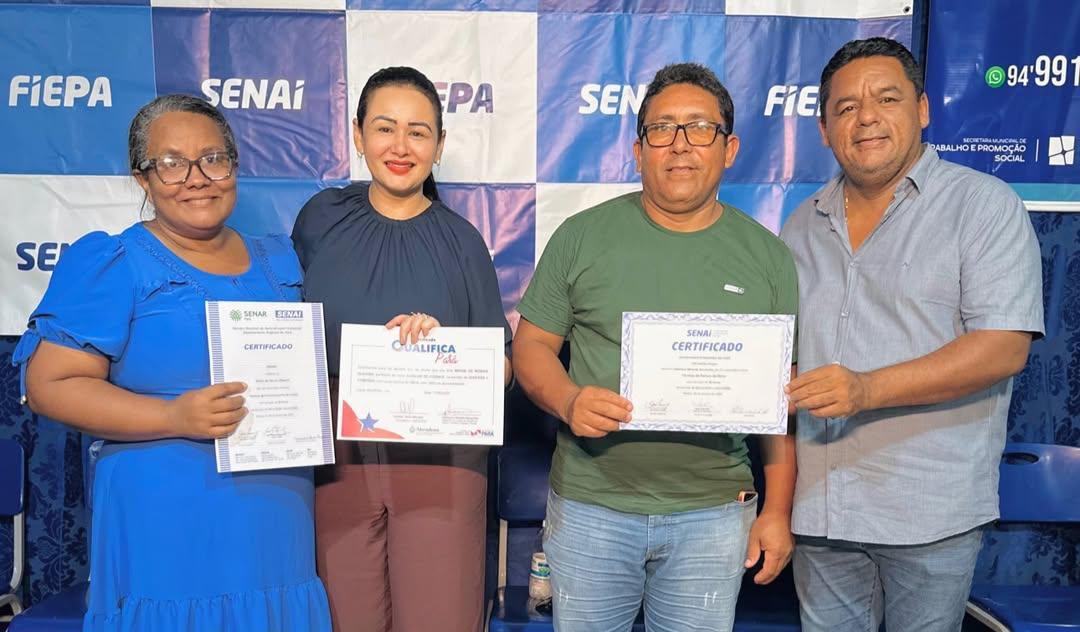 Na terça-feira (14), moradores de Piçarra receberam certificados de qualificação profissional, fruto de uma parceria entre a gestão da prefeita Laane Barros, o Governo do Estado, por meio do programa Qualifica Pará, o Serviço Nacional de Aprendizagem Industrial (Senai), o Serviço Nacional de Aprendizagem Rural (Senar) e a Federação das Indústrias do Estado do Pará (Fiepa).