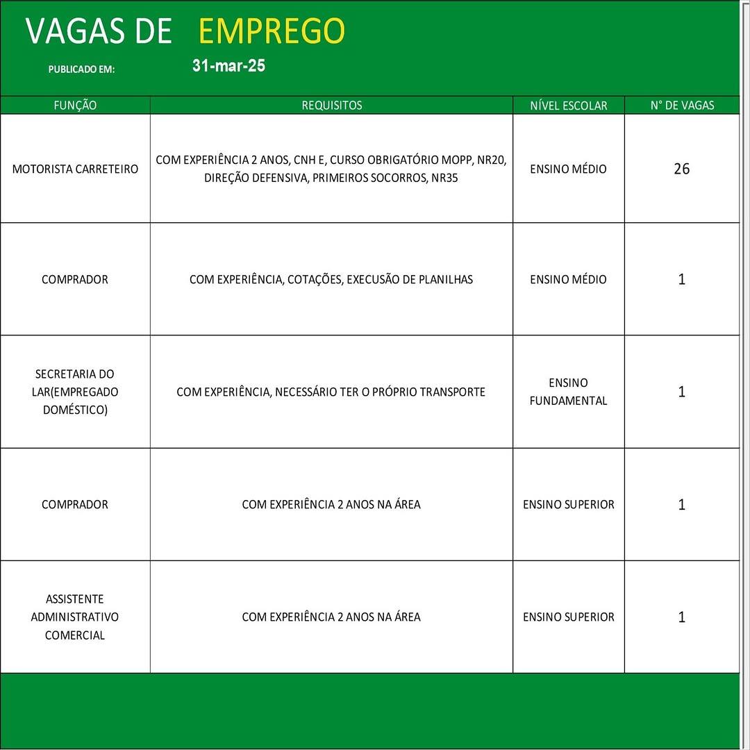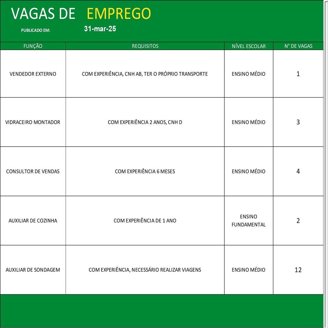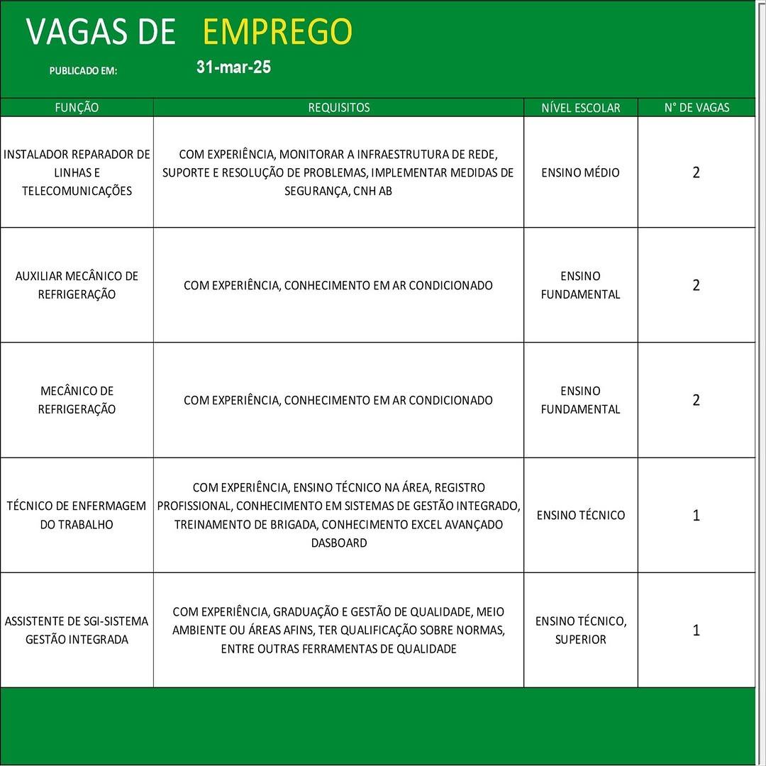 Confira as oportunidades: