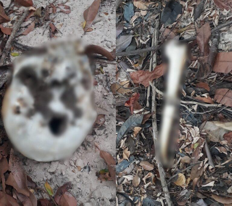 Imediatamente, uma guarnição foi atender a ocorrência, confirmando a veracidade do caso. Se tratava de um crânio e um fêmur encontrados no Projeto de Assentamento Água da Saúde, na região do Lago de Tucuruí.