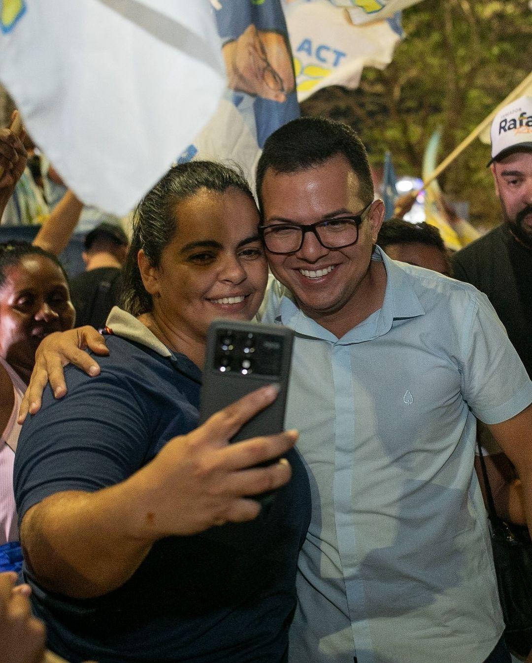Junto de sua candidata a vice, Adriana Roza (PSDB), Rafael foi carinhosamente recebido pelos moradores, que se entusiasmaram durante o ato de campanha, realizado na noite deste sábado (21).