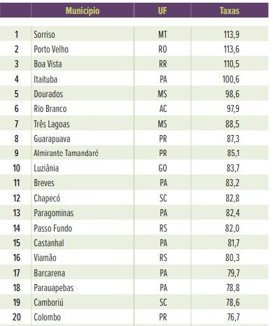 Entre as 50 cidades brasileiras que lideram a estatística, o Pará tem ainda Cametá na 22ª colocação, Abaetetuba na 25ª colocação e Altamira na 28ª. (Confira abaixo)