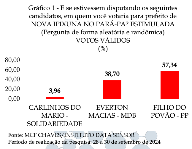 Uma pesquisa divulgada pelo Data Sensor indica que Filho do Povão (PP), lidera a disputa eleitoral em Nova Ipixuna