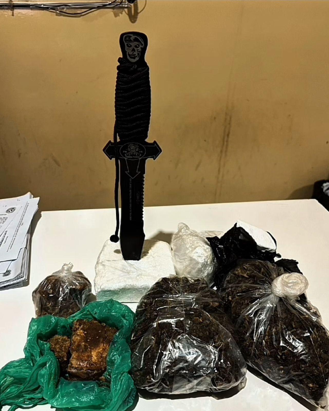 Durante a busca no local, a equipe encontrou diferentes tipos de drogas, incluindo pasta branca análoga à cocaína, porções de “skunk” e crack, todas embaladas para possível comercialização. O material foi apreendido e o homem recebeu voz de prisão.