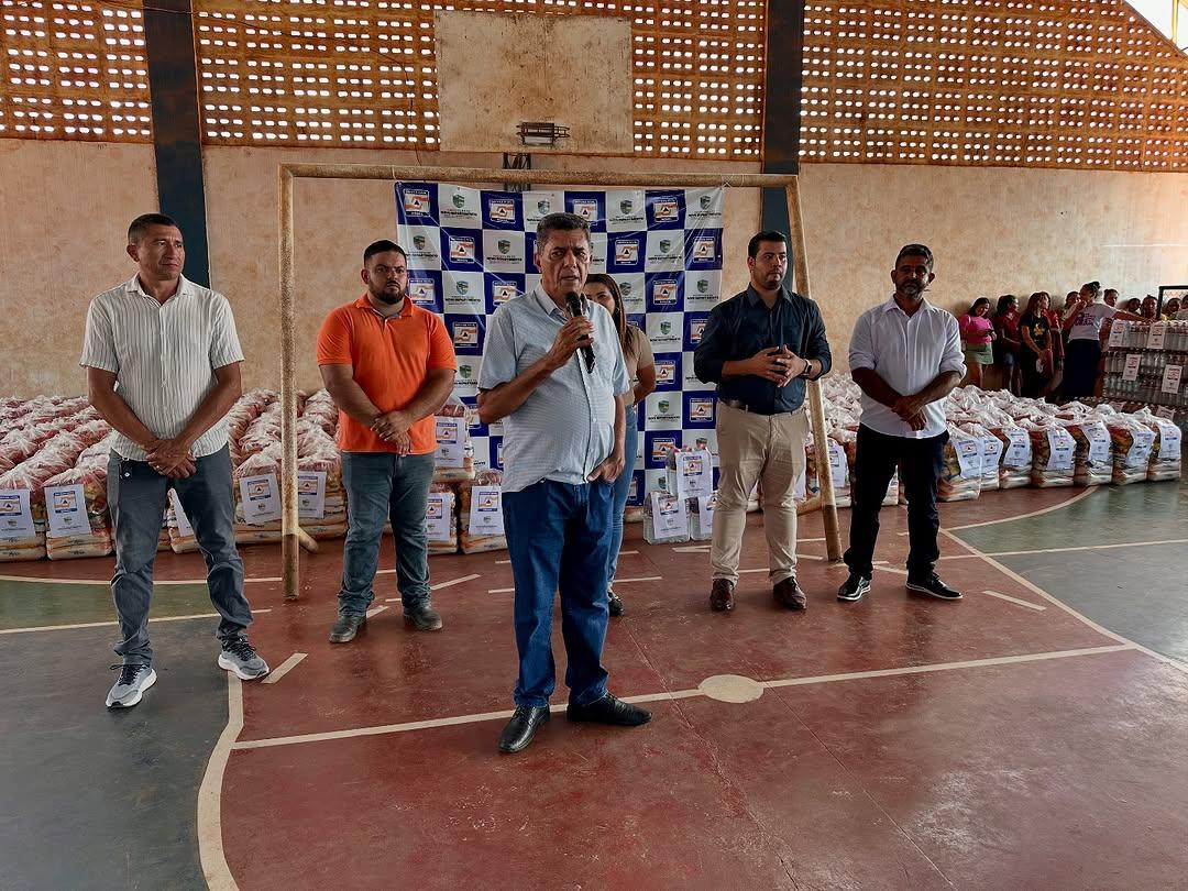 Entre as pessoas que estiveram presentes durante a entrega dos kits para os moradores, estavam o prefeito de Novo Repartimento, Valdir Lemes, o coordenador da Defesa Civil de Novo Repartimento, Ricardo Leite, e também o vereador de Repartimento, Luan Oliveira.