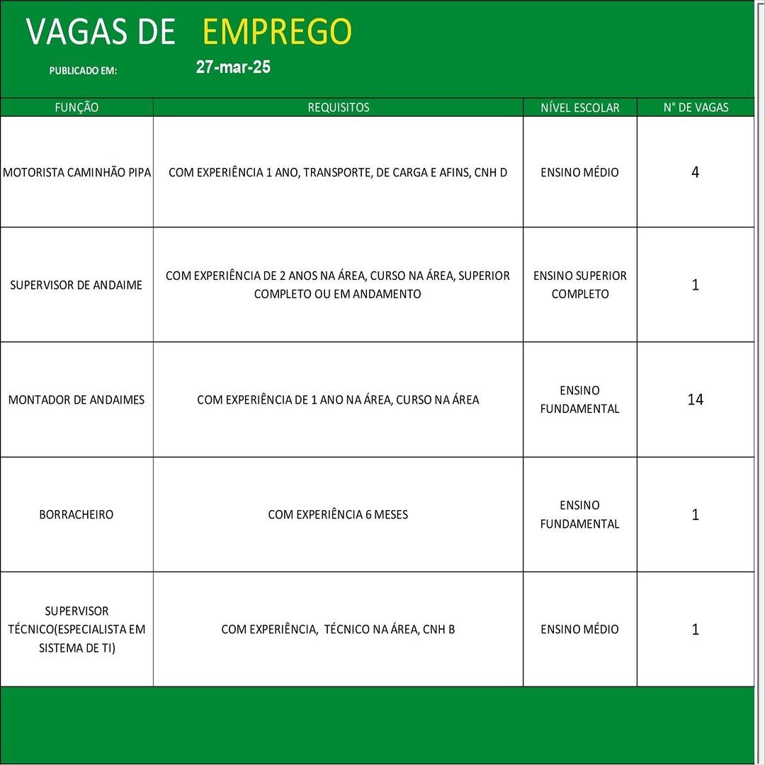 Confira as oportunidades: