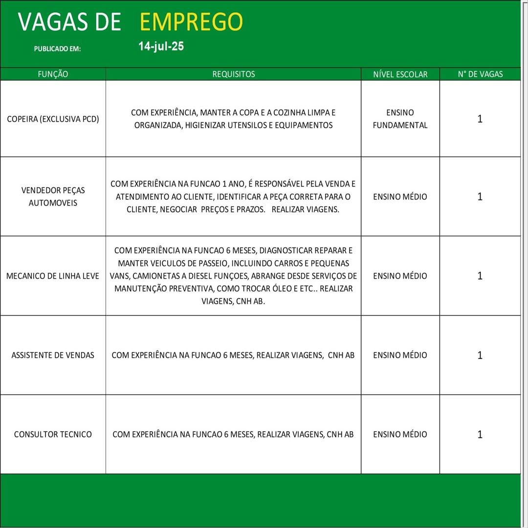 Confira as oportunidades: