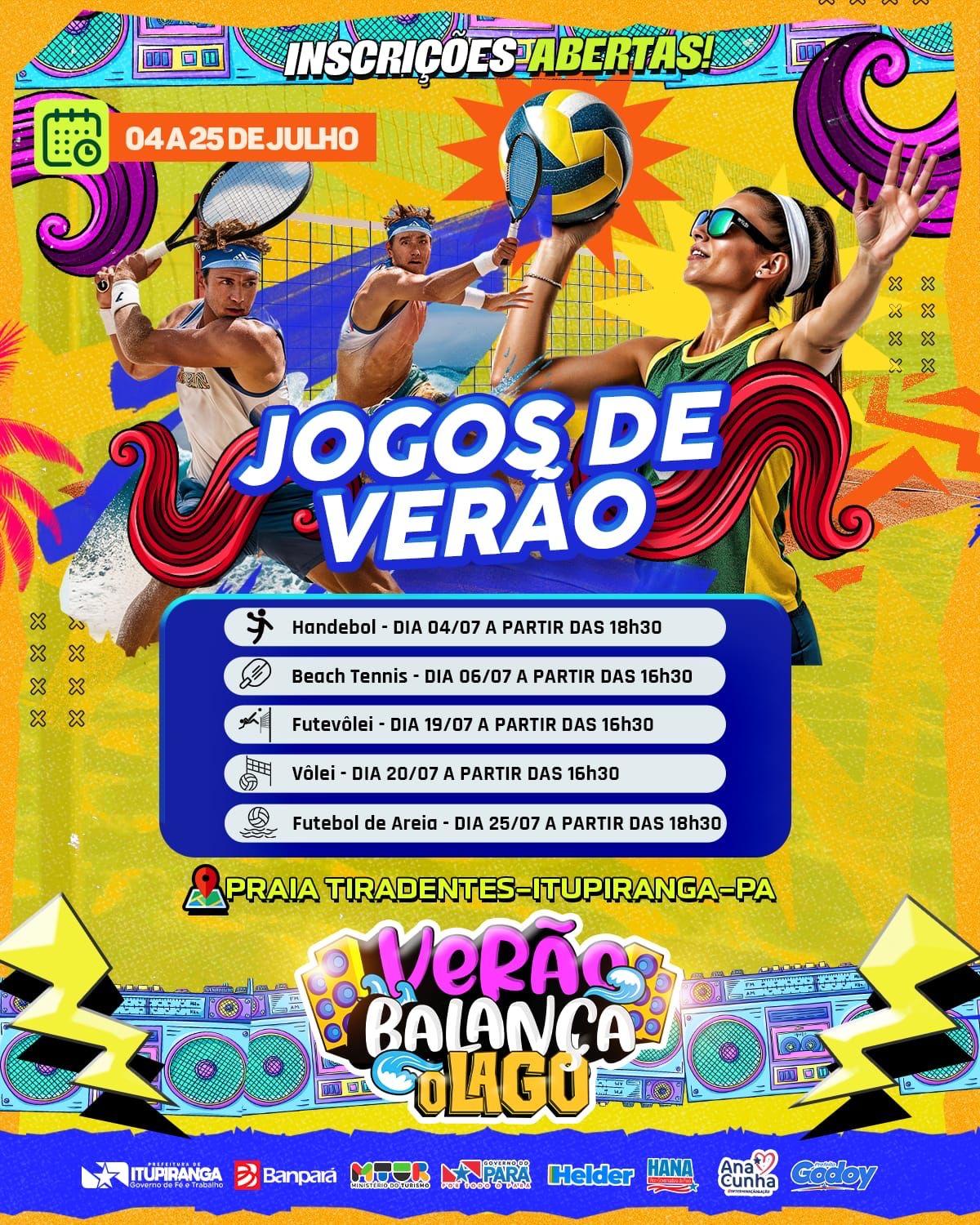 A temporada de veraneio promete ser animada em Itupiranga com a chegada dos Jogos de Verão, que fazem parte da programação do festival Verão Balança o Lago. Com atividades esportivas e muita energia positiva, o evento será realizado entre os dias 4 e 25 de julho, na Praia Tiradentes, e já está com inscrições abertas.